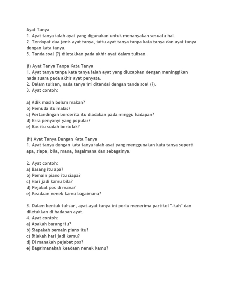Tetapi berbeza oleh adanya tanda tanya (?) pada akhir ayat itu. Ayat tanya dengan kata tanya ayat tanya dengan kata ganti nama diri tanya ayat tanya dengan frasa sendi nama tanya. Video ini menerangkan tentang ayat tanya tanpa kata tanya. Bm tahun 1 | kata nama khas. Ayat penyata a)budak itu sangat rajin dan baik hati.
