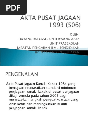 Related : Akta Pusat Jagaan 1993 / Definisi pusat jagaan berdaftar pusat jagaan berdaftar merupakan suatu pusat jagaan yang didaftarkan di bawah seksyen 6 akta 506..