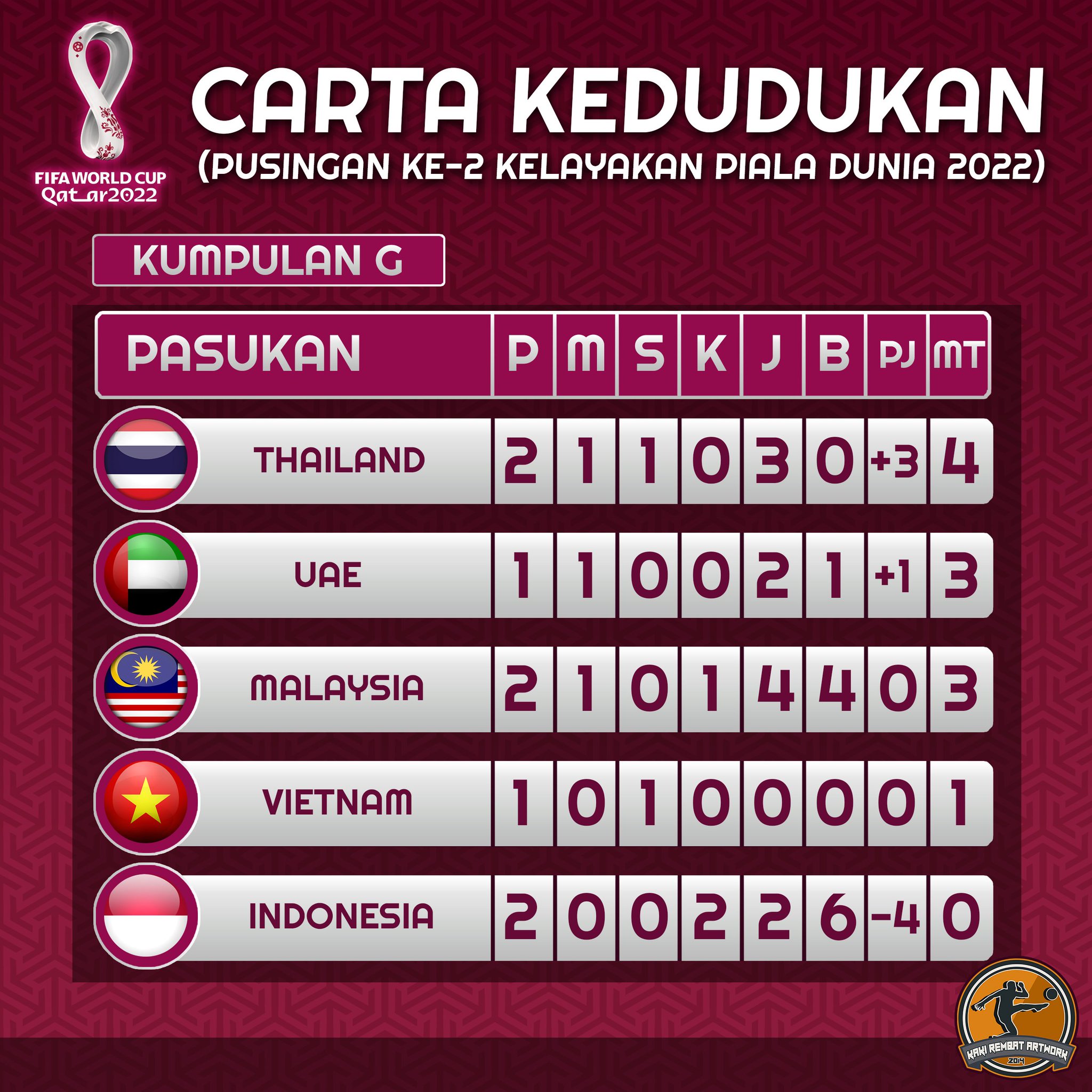 Kedudukan Terkini Ranking Kumpulan G Malaysia Kelayakan Piala Dunia 2022 The Jdt Dot Com from i1.wp.com Namun masih gagal memungut tiga mata dalam. Pasukan bolasepak malaysia, harimau malaya menggalas cabaran negara dalam kempen kelayakan piala dunia 2022 dan piala asia 2023. Kelayakan piala dunia 2022 dan piala asia 2023 malaysia 21 thailand astro arena. Jadual perlawanan kelayakan piala dunia 2022 malaysia|skuad harimau malaya dibawah kendalian tan cheng hoe telah diundi bersama pasukan uae, vietnam, indonesia, dan thailand dalam kumpulan g untuk aksi pusingan 2 kelayakan piala dunia 2022/piala asia 2023. Harimau baham garuda malaysia lwn indonesia 2 0 kelayakan piala dunia 2022 piala asia 2023. Rindu nk tengok malaysia perform untuk kelayakan piala dunia,dan piala asia. Piala dunia 2022 menjadi peluang sangat bagus untuk berjudi bola. Hasil identik yang didapat timnas indonesia dan thailand dalam laga uji coba membuat duel dua tim asal asia tenggara ini tak salah jika dilabeli duel tim yang terluka.