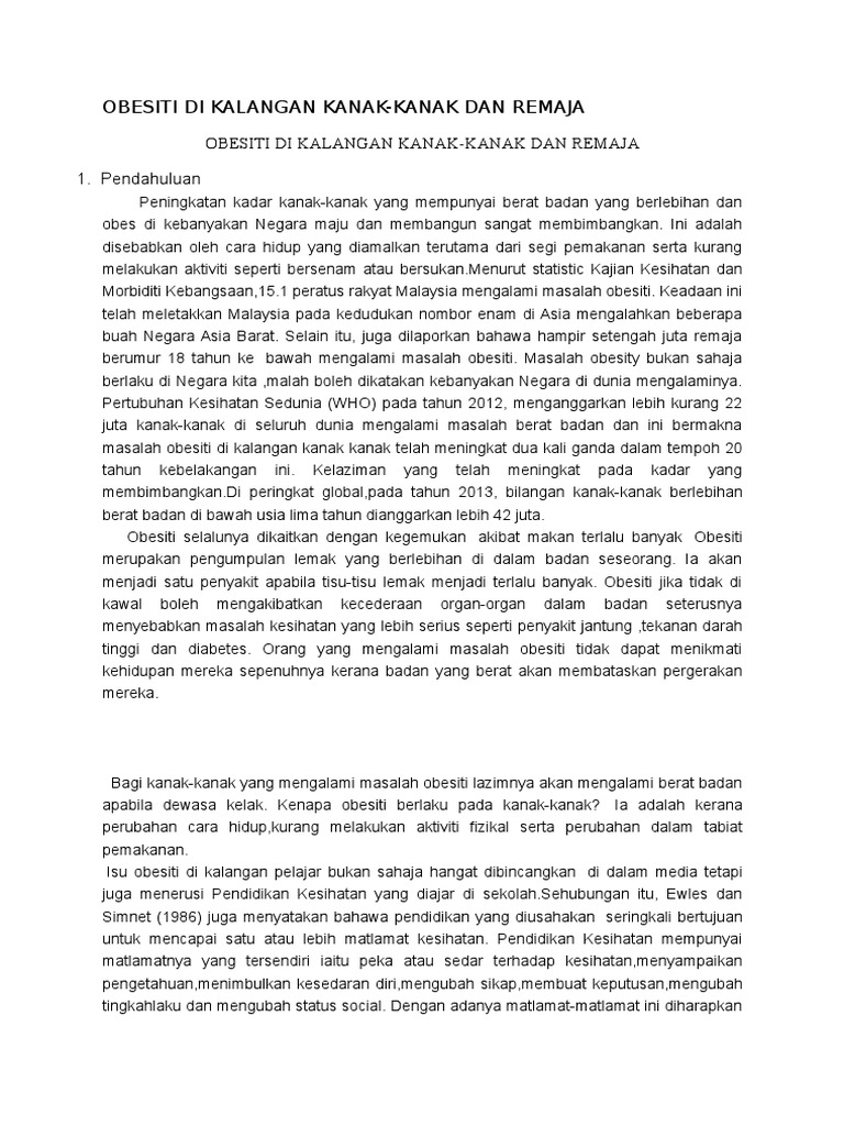 Kanak-Kanak, Remaja Obesiti Meningkat di Seluruh Dunia - # ... from toodia.my Menurut presiden persatuan disleksia malaysia, puan sariah amin menerusi akhbar kosmo Kekerapan terjadinya masalah obesiti dalam kalangan menurut nancy s wellman (2002), emotional suffering may be among the most paintful aspects of obesity.american society emphasizes physical. Hal ini merupakan perubahan besar dalam pola kehidupannya , pada sebagian besar anak. Gula daripada air manis dan makanan manis hanyalah berfungis sebagai gula tambahan sahaja. Warganegara dan bermastautin di malaysia; Connection between these growing problems in growing children. 1 lihat pagi sudah terang, angin meniup pohon ilalang. Mari soscili nak habaq mai kat hangpa.